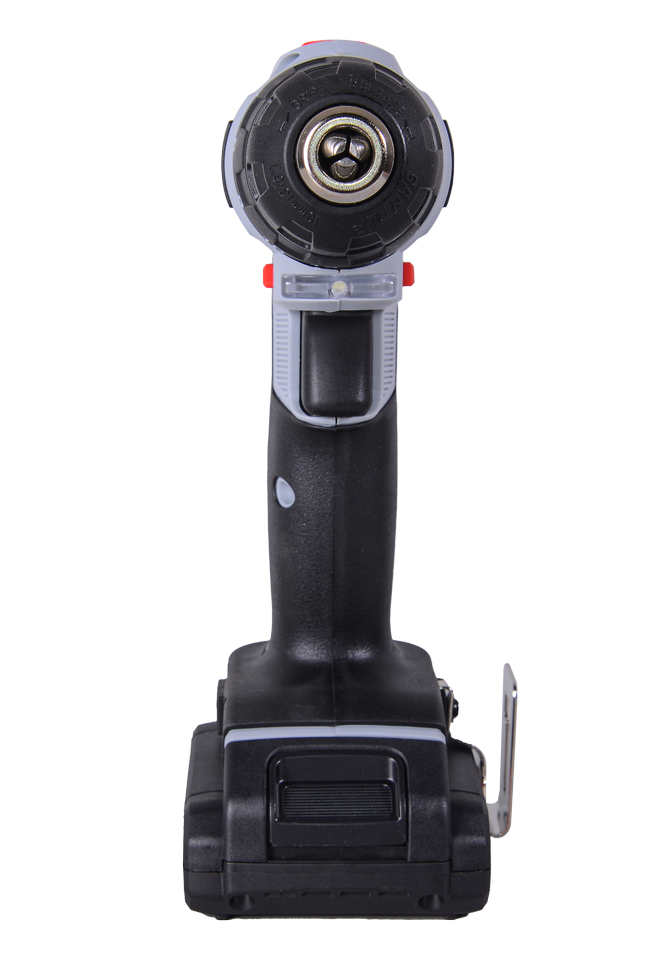 Прорезиненная рукоять обеспечивает удобное и надёжное удержание инструмента в руке во время работы. Быстрозажимной патрон облегчает замену рабочей оснастки. Двухскоростной редуктор для удобства ведения различных работ. Реверсивный механизм предназначен для быстрого изъятия сверла из материала в случае застревания, выкручивания или ослабления крепежа. С помощью регулировки частоты вращения инструмент можно настроить под необходимую толщину материала. Модель работает от надёжного литий-ионного аккумулятора (Li-Ion).