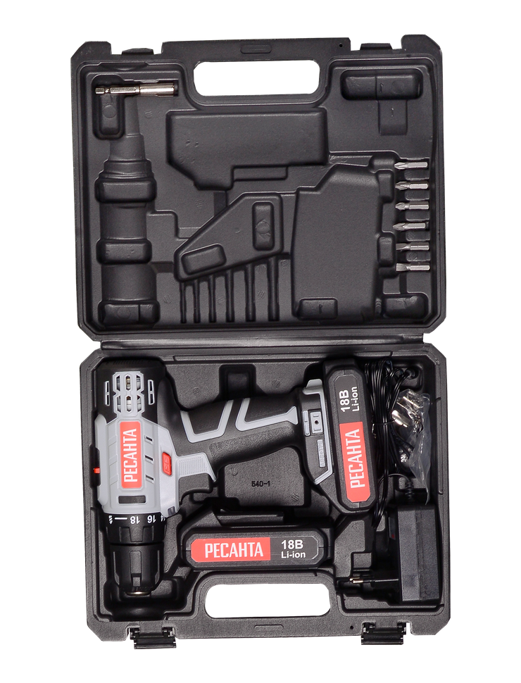 Прорезиненная рукоять обеспечивает удобное и надёжное удержание инструмента в руке во время работы. Быстрозажимной патрон облегчает замену рабочей оснастки. Двухскоростной редуктор для удобства ведения различных работ. Реверсивный механизм предназначен для быстрого изъятия сверла из материала в случае застревания, выкручивания или ослабления крепежа. С помощью регулировки частоты вращения инструмент можно настроить под необходимую толщину материала. Модель работает от надёжного литий-ионного аккумулятора (Li-Ion).