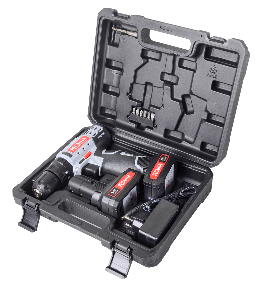 Прорезиненная рукоять обеспечивает удобное и надёжное удержание инструмента в руке во время работы. Быстрозажимной патрон облегчает замену рабочей оснастки. Двухскоростной редуктор для удобства ведения различных работ. Реверсивный механизм предназначен для быстрого изъятия сверла из материала в случае застревания, выкручивания или ослабления крепежа. С помощью регулировки частоты вращения инструмент можно настроить под необходимую толщину материала. Модель работает от надёжного литий-ионного аккумулятора (Li-Ion).
