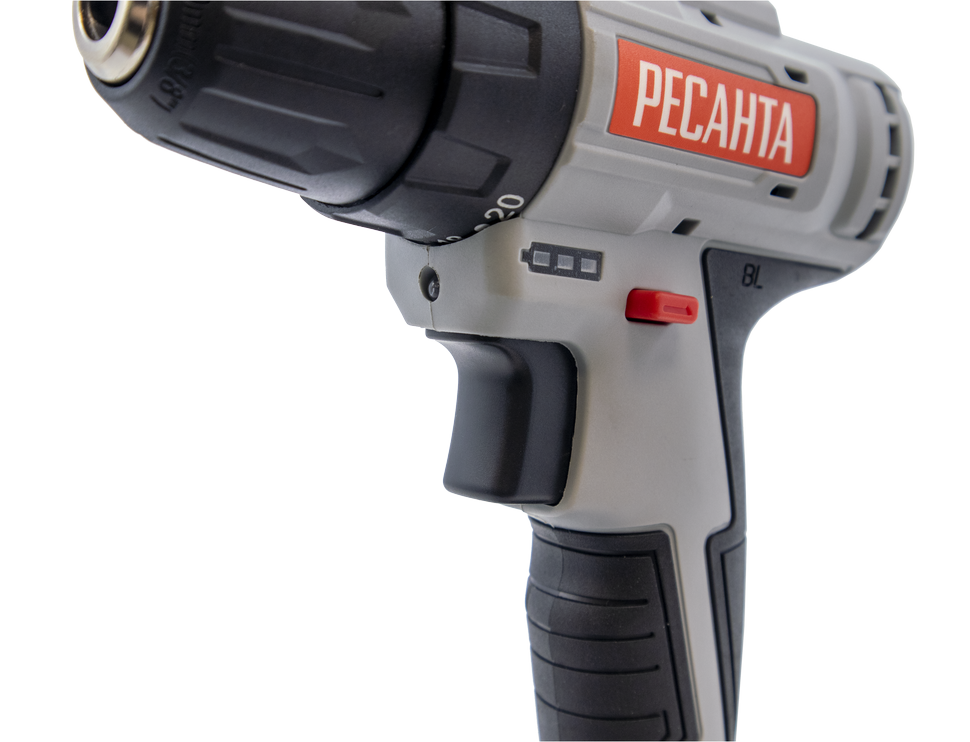 Прорезиненная рукоять обеспечивает удобное и надёжное удержание инструмента в руке во время работы. Быстрозажимной патрон облегчает замену рабочей оснастки. Двухскоростной редуктор для удобства ведения различных работ. Реверсивный механизм предназначен для быстрого изъятия сверла из материала в случае застревания, выкручивания или ослабления крепежа. С помощью регулировки частоты вращения инструмент можно настроить под необходимую толщину материала. Модель работает от надёжного литий-ионного аккумулятора (Li-Ion).