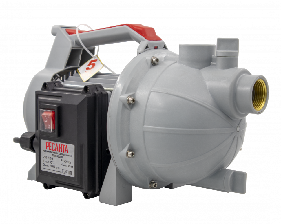 Поверхностный насос Ресанта ПСН-3600П предназначен для подачи под давлением чистой воды в дом, для орошения сада и огорода. Вода не должна содержать абразивных или волокнистых, а также химических составных частей, которые могли бы повредить материал деталей насоса.