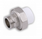 Муфта разъёмная (Американка) с наружной резьбой для перехода с полипропиленовой трубы на резьбу. Комбинированный полипропиленовый фитинг - представляет собой разъемное соединение между металлической и пластиковой трубой. Латунные части производятся методом горячего штампования, пластиковые - методом литья под давлением.