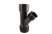 Тройник применяется для обеспечения обустройства внешней канализации. Подключаемый участок трубопровода имеет диаметр 368 мм. Он используется для того, чтобы обеспечивать движение стоков в правильном направлении. Также предусмотрен отвод, расположенный под углом 45°.
