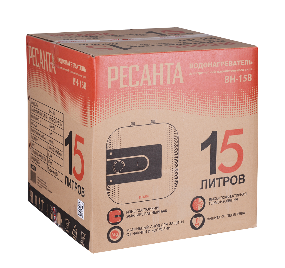 Электрический водонагреватель накопительного типа ВН-15В Ресанта предназначен для нагрева холодной воды, поступающей в него из водопровода. Используется в бытовых целях в местах постоянного и временного проживания, в гостиницах и других жилых помещениях.