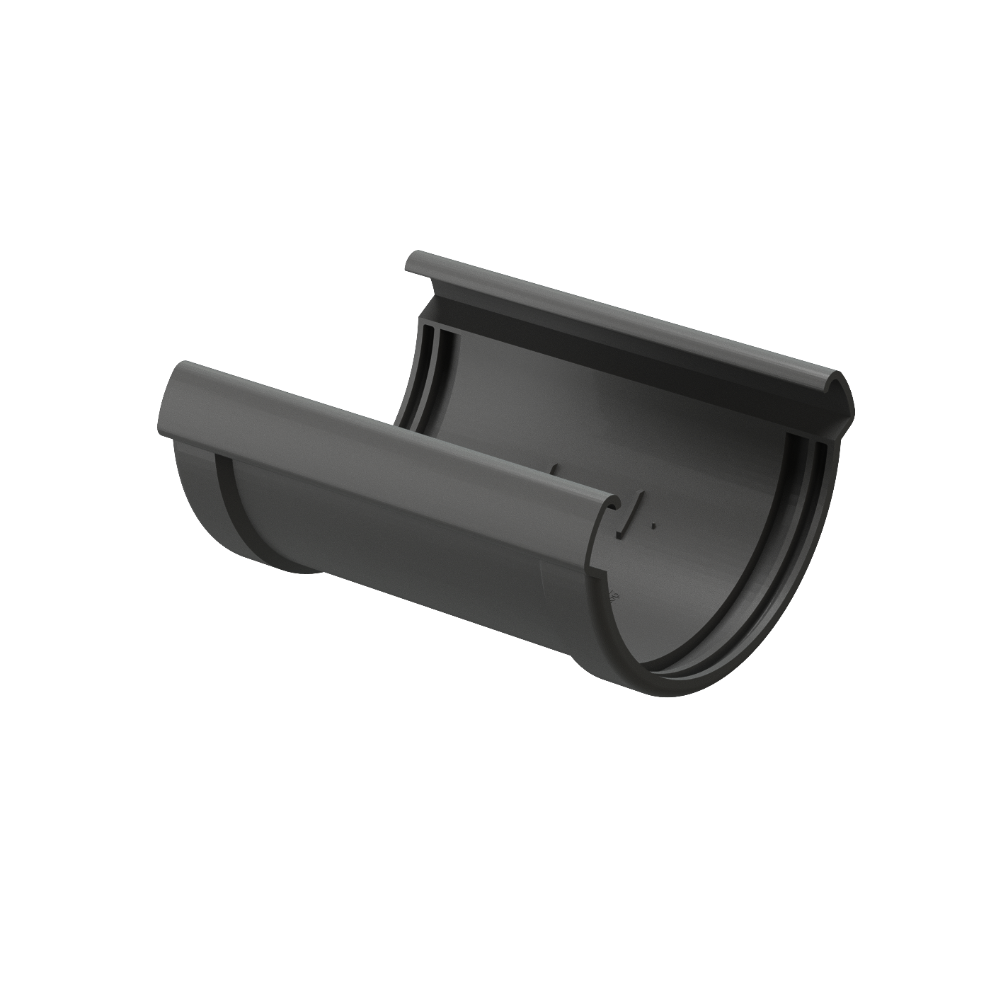 Желобы просто вставляются в соединитель с двух концов. Прочность и герметичность обеспечивается за счёт уникальной технологии соединения элементов на прорезиненных уплотнителях. Крепление кронштейнов под желоб должны находится не более чем в 150 мм от краев соединителей желобов, для прочности конструкции.